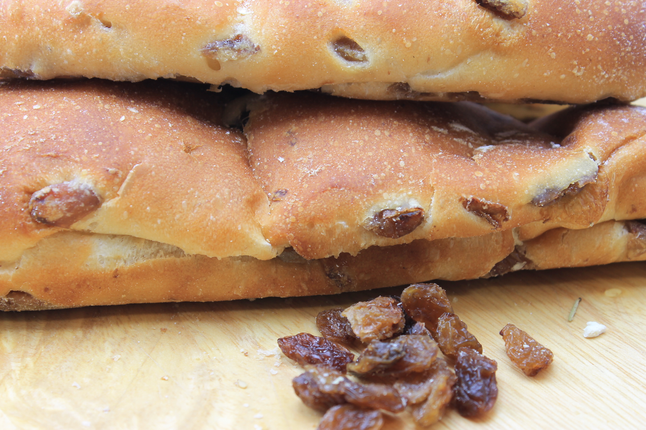 PANE LUNGO ALLE OLIVE  O ALL’UVETTA O ALLE NOCI. Tre panini deliziosi all’olio. Il pane lungo alle olive è ricco di ottime olive tagliate in piccoli pezzi; il pane all’uvetta con dolce uvetta che rende questo pane dolce e irresistibile  e il pane alle noci per chi ma la frutta. Caratteristica che li accomuna è la forma allungata.